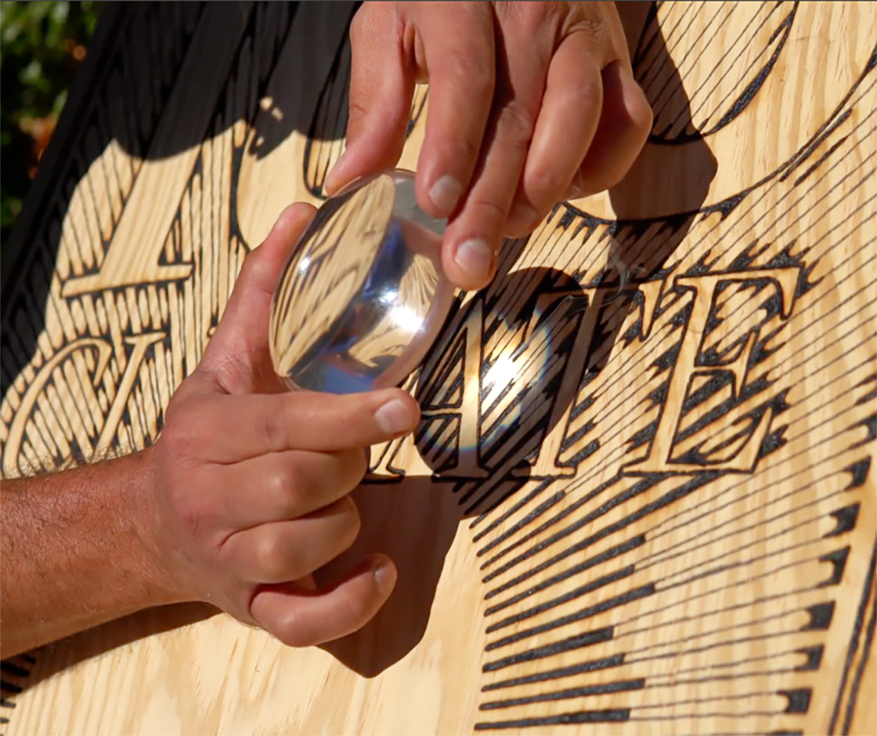 Dia menemui bakat istimewa ini semasa mengembara di pergunungan Asia Tengah pada tahun 2012. Dia kebetulan membawa kanta pembesar kecil apabila dia menyedari cahaya matahari mengenai sekeping kayu dengan cara yang menghentikannya: “Pada ketika itu, saya tahu saya telah menemui bukan sekadar alat, tetapi panggilan.” Dia mengasaskan syarikatnya, , pada tahun yang sama. “Sejak hari itu, saya tidak pernah melihat matahari dengan cara yang sama,” katanya. “Ia menjadi kedua-dua kolaborator dan kompas saya, rakan kongsi yang terus mengajar saya apa yang mungkin apabila penciptaan bertemu cahaya putih tulen.”